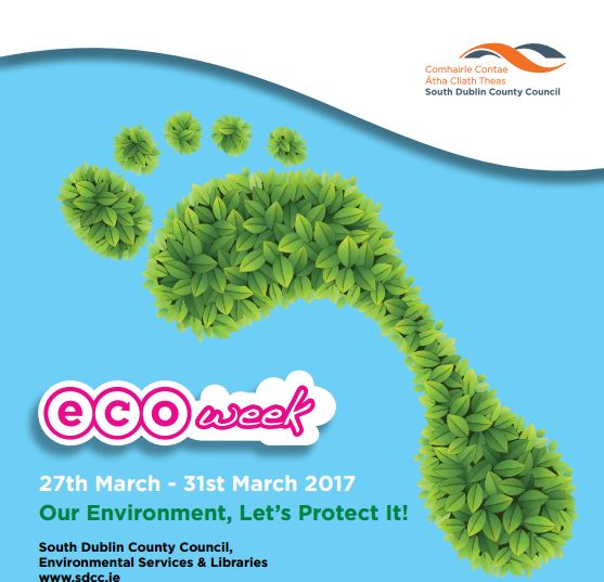 South Dublin County Council have organisated and will host Eco Week 2017 starting March 27th. Now in its 13th year, Eco Week has grown and developed into a shared celebration of the environment. The week along event will be launched by the Mayor of South Dublin County, Cllr Guss O’Connell, in County Hall on Monday 27th March at 12pm.(by invite)