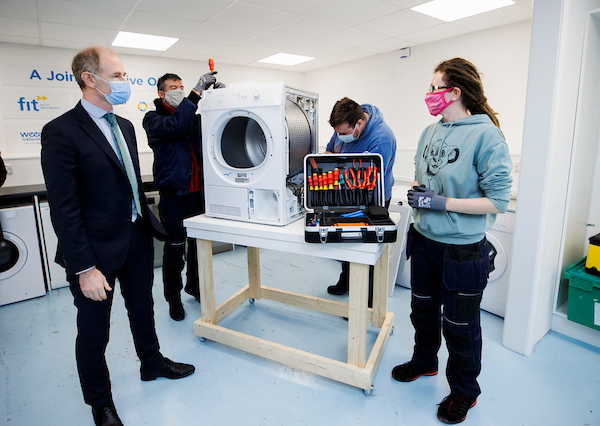 Students from the new training course for repair technicians received the Ministerial seal of approval on Tuesday, Jan 25th 2022 when Junior Minister Ossian Smyth visited their training centre in Co Meath.