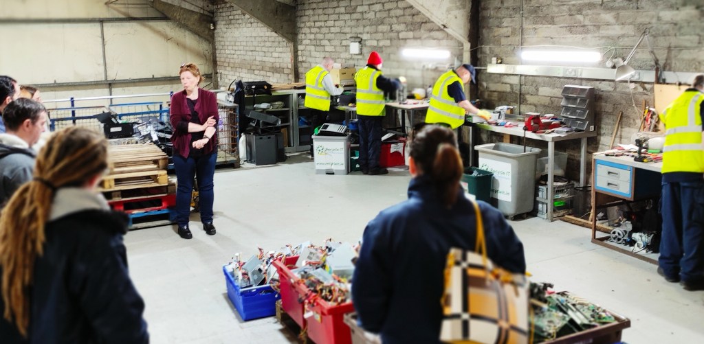 As part of the learning and information sharing process Recycle IT recently visited the students and learned about the training course and how everyone is progressing. On learning more about our work recycling old electrical appliances the students were eager to visit the Recycle IT. The visit to our recycling facility was arranged for April 2022. The team had an informative morning and asked questions about our operations and the many types of appliances received for safe recycling.