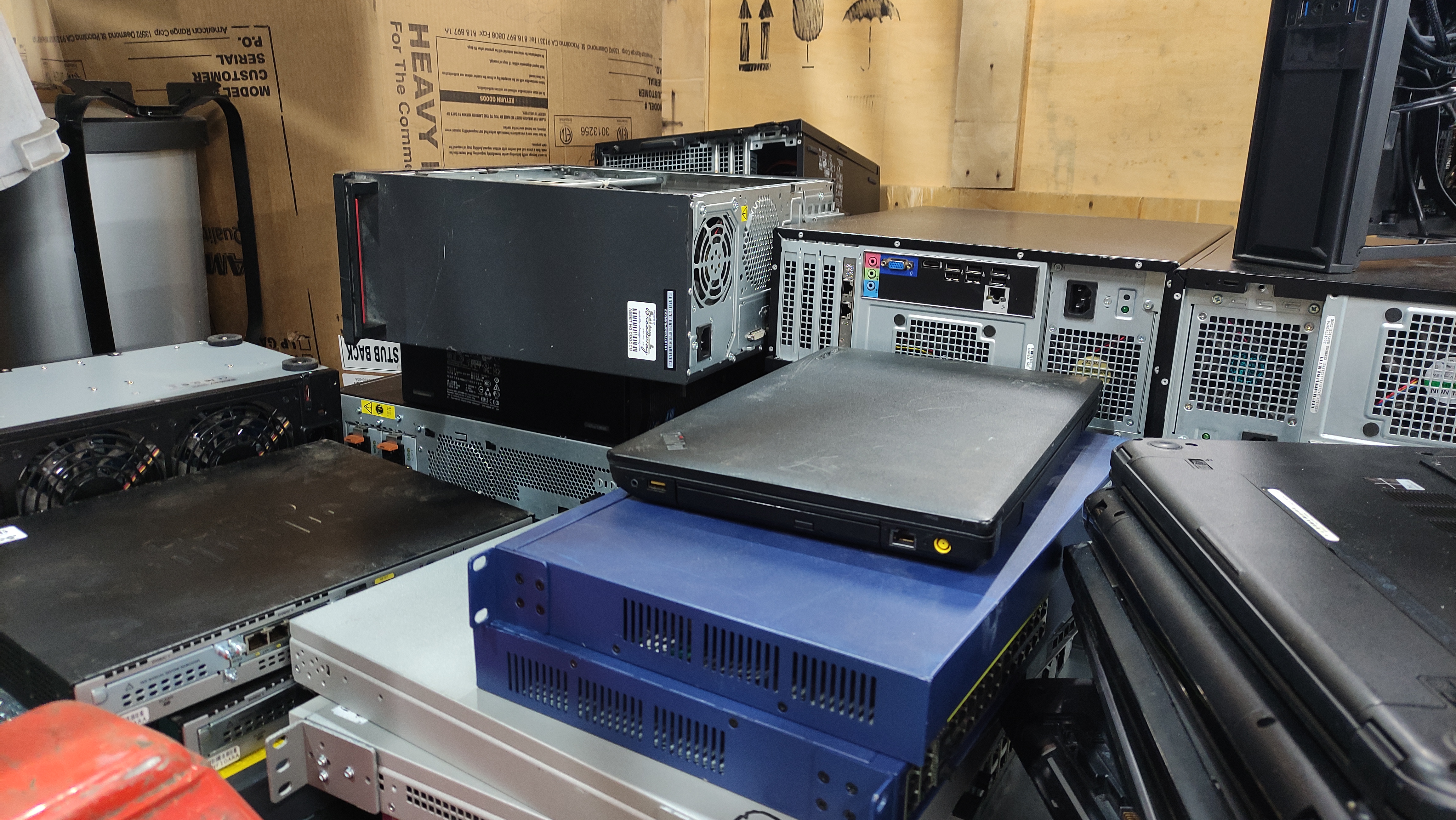 With our recycling initiative, we try to promote reuse first, but most of the computers, laptops servers and communication equipment we deal with are years out of date and beyond repair and reuse. Many have been sitting at home or in offices for years, some have had parts removed or are damaged beyond recovery on arrival but all the equipment can be safely recycled.