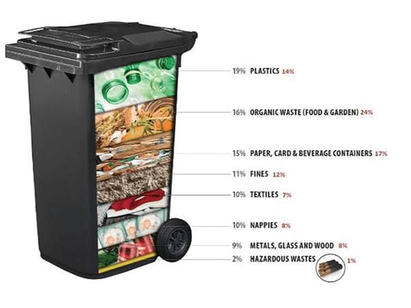- 27 per cent of biodegradable waste;