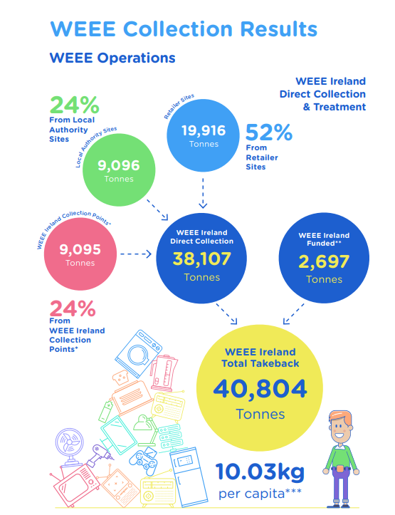 These types of items are replaced and renewed regularly and the old stuff should be recycled. Last year WEEE Ireland helped us recycle 10.03 kg per head of population in Ireland.