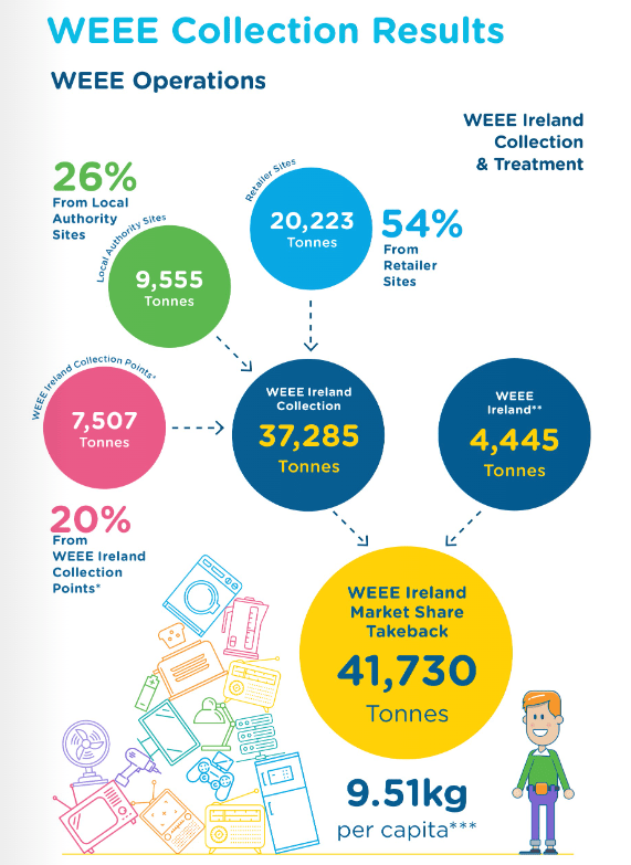 You can use the infographic to find out how many kilos of electronic equipment have been collected per inhabitant in Ireland and other EU countries.