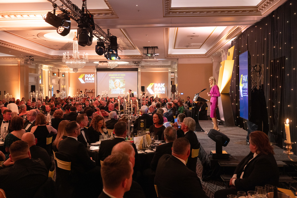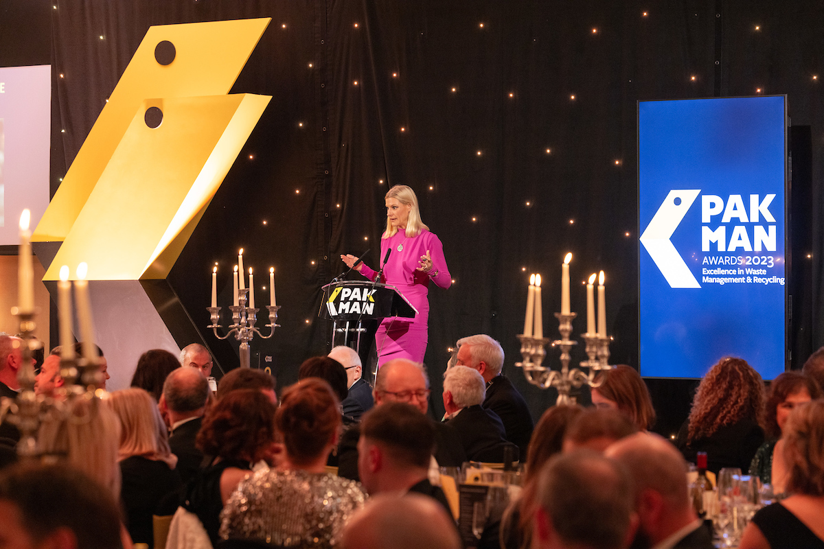 Pippa Hackett (TD) Minister of State for Land Use and Biodiversity in the Department of Agriculture, Food and the Marine addressing the Pakman Awards, Oct 26th, 2023.